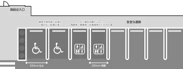 | 区画サイズ | 幅2.5〜3.5m × 長さ5.0m程度 | 車いす乗降を想定し、ロードスペース(乗降帯)を隣接して確保 |