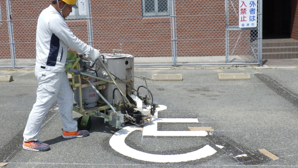 雨天時は延期判断。路面温度10℃未満は低温対応塗料を選定します。