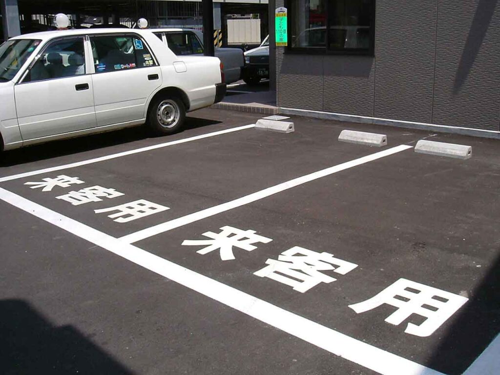 駐車番号・矢印・「止まれ」「来客用」などの路面表示は、ぱっと読める可読性長持ちする耐久性の両立が重要。