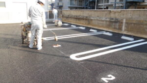 - 規格寸法でのマスキング・墨出し、スプレー/ローラー/溶融式等で塗装
